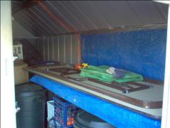 | The black garbage cans on the left are empty and go outside when the Taj is in use. On the right (North) the garbage cans (nine) are filled with Ammonium Nitrate. |