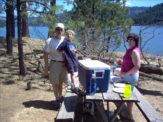 Dow, JC, Leo (under the table), and Barb. This is the same place Joe took his kids backpacking and camping several years ago. This time we came in by boat.