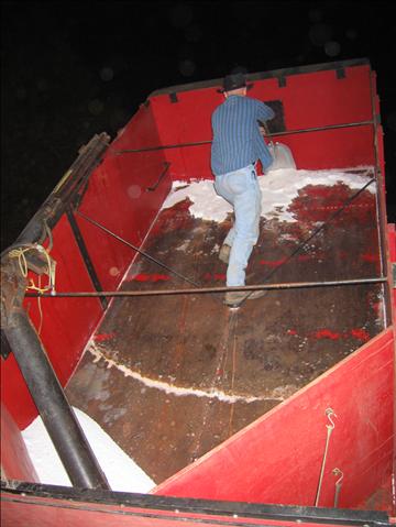 The ammonium nitrate stayed in the truck uncovered too long and got damp. It stuck to the bed of the truck and required mechanical assistance to be removed.