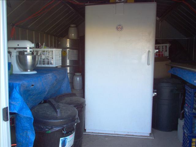 The black garbage cans on the left are empty and go outside when the Taj is in use. On the right (North) the garbage cans (nine) are filled with Ammonium Nitrate.