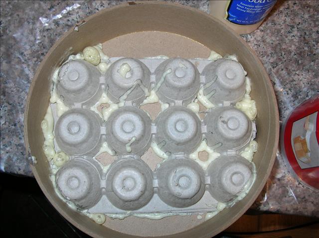 Due to neighbor complaints from last year I'm reducing the capacity of the largest targets. I'm doing that by gluing in part of an egg carton. The results are not pretty, but it doesn't have to be.