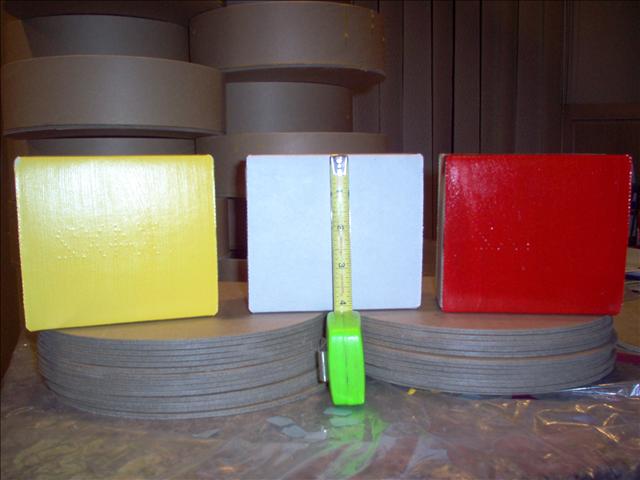 The inside dimensions are 4x4x2". These targets will only be in red, yellow, and white.