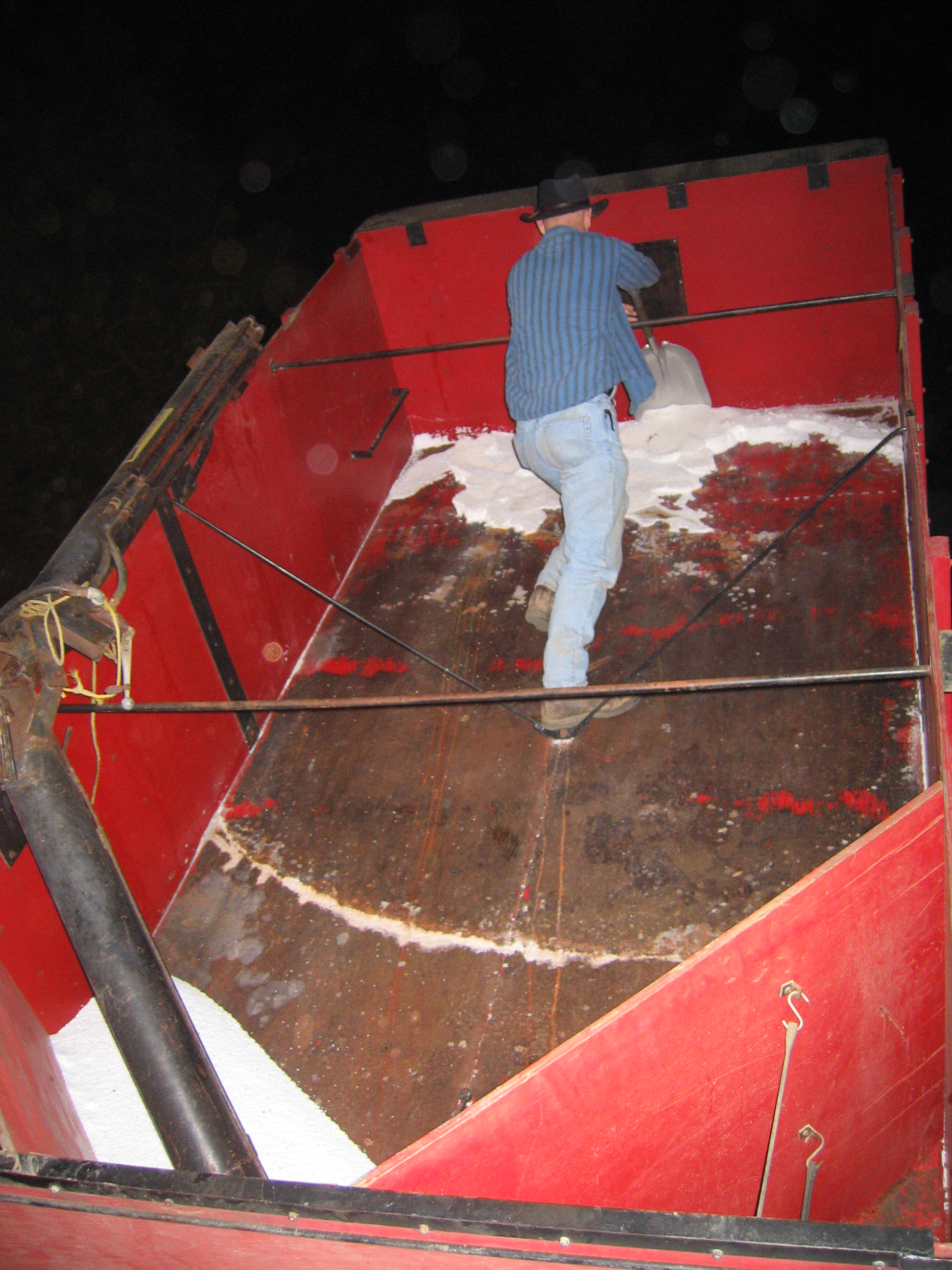 The ammonium nitrate stayed in the truck uncovered too long and got damp. It stuck to the bed of the truck and required mechanical assistance to be removed.