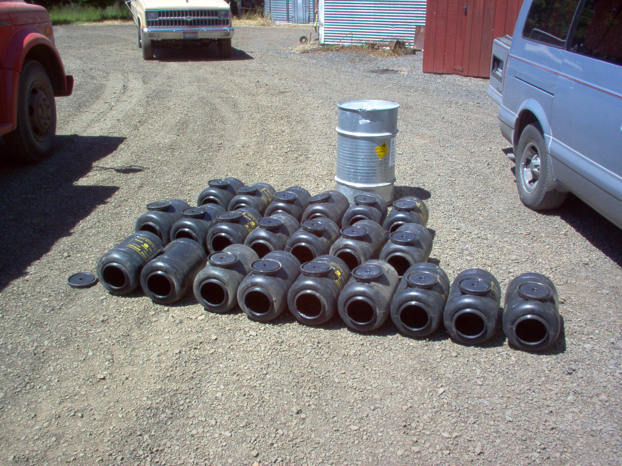 July 1, 2005. Some of the small containers to store the nearly 3500 pounds of Ammonium Nitrate I bought today.