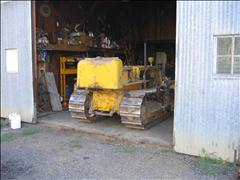 | I used the cat to smooth out the dirt in front of the shed then Ry planted it to grass. |