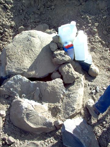 Underneath the top of the rock we partially removed was about five pounds of HE. Another five pounds were put on top of it and a detonator target put on top of that.