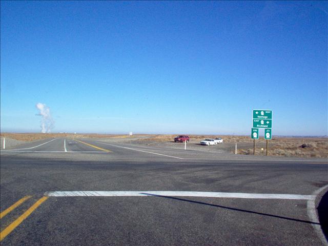 | Notice anything strange about this picture? The signs tell you what is to the left and the right but not straight ahead. I guess there is nothing out there--except that little old nuclear facility spouting steam in the distance. |