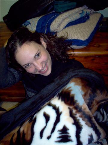 Kim with her new blanket