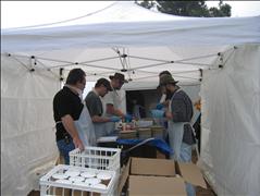 | Tim and Lisa brought their camping trailer for us the Sunday before. During the event Ry and his kids slept in it, Xenia used it for baby sitting and it was just generally a wonderful thing to have onsite. |
