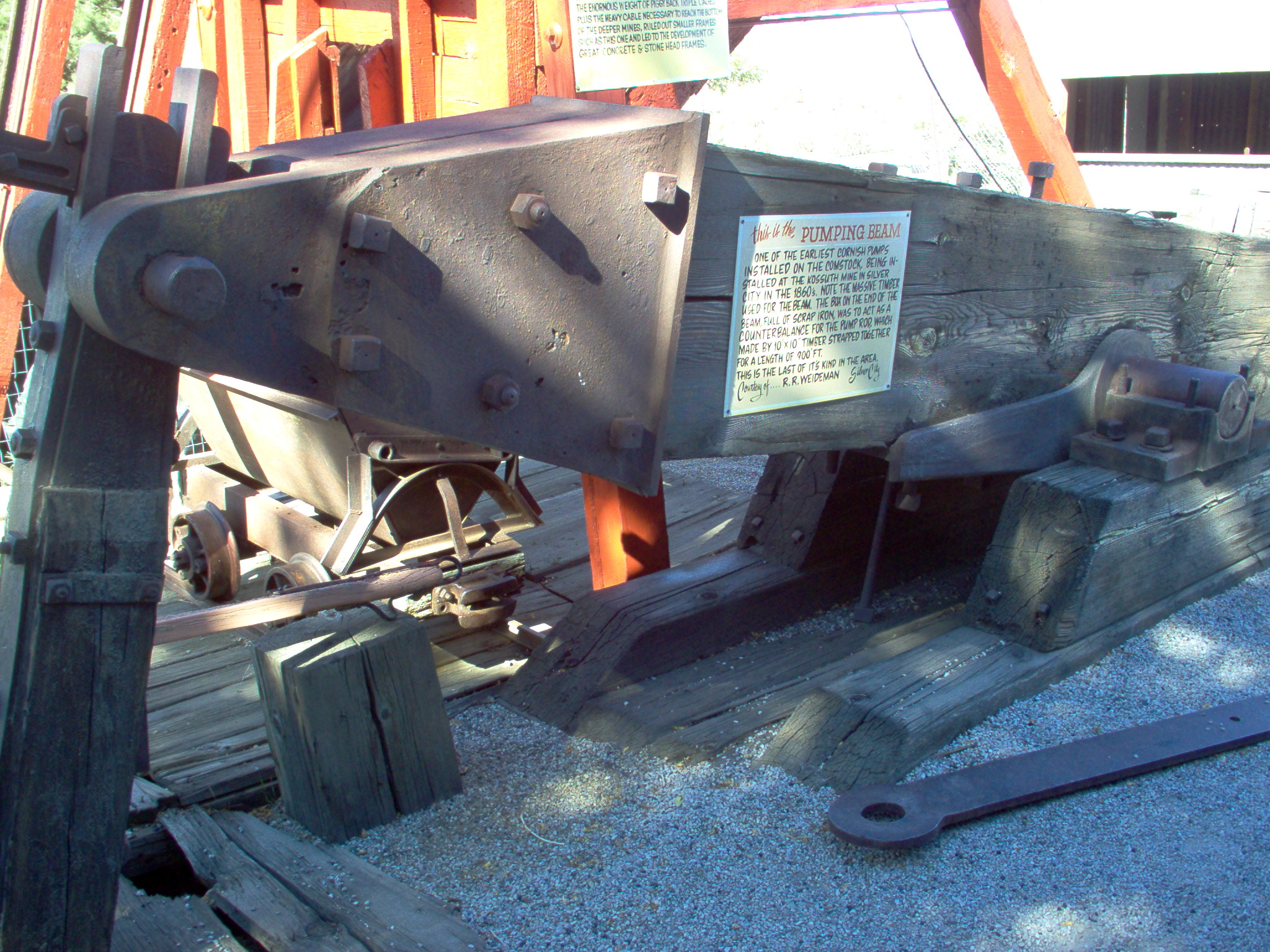 This beam was connected to a series of 10" x 10" timbers that went down 700 feet to pump water out of the mines.