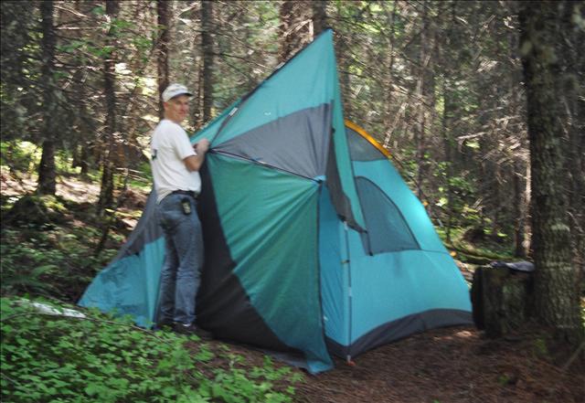 Joe setting up Barb and Joe's tent.
