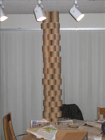 One end of the four inch diameter target bodies have been glued into place and are drying on the dining room table.