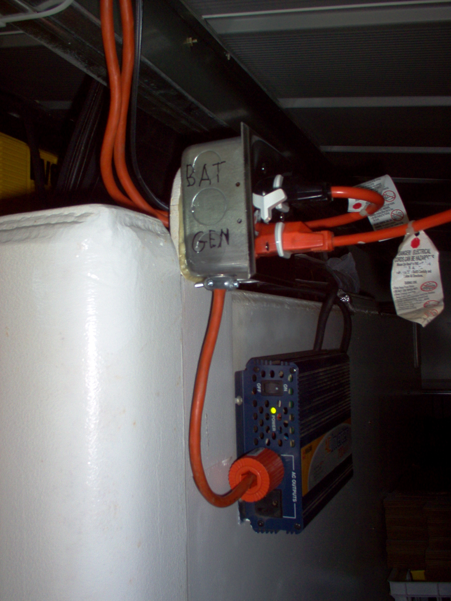 Rewiring the Taj Mahal for easier switching between generator and battery power. Not seen is that the battery charger is hardwired to the generator input.