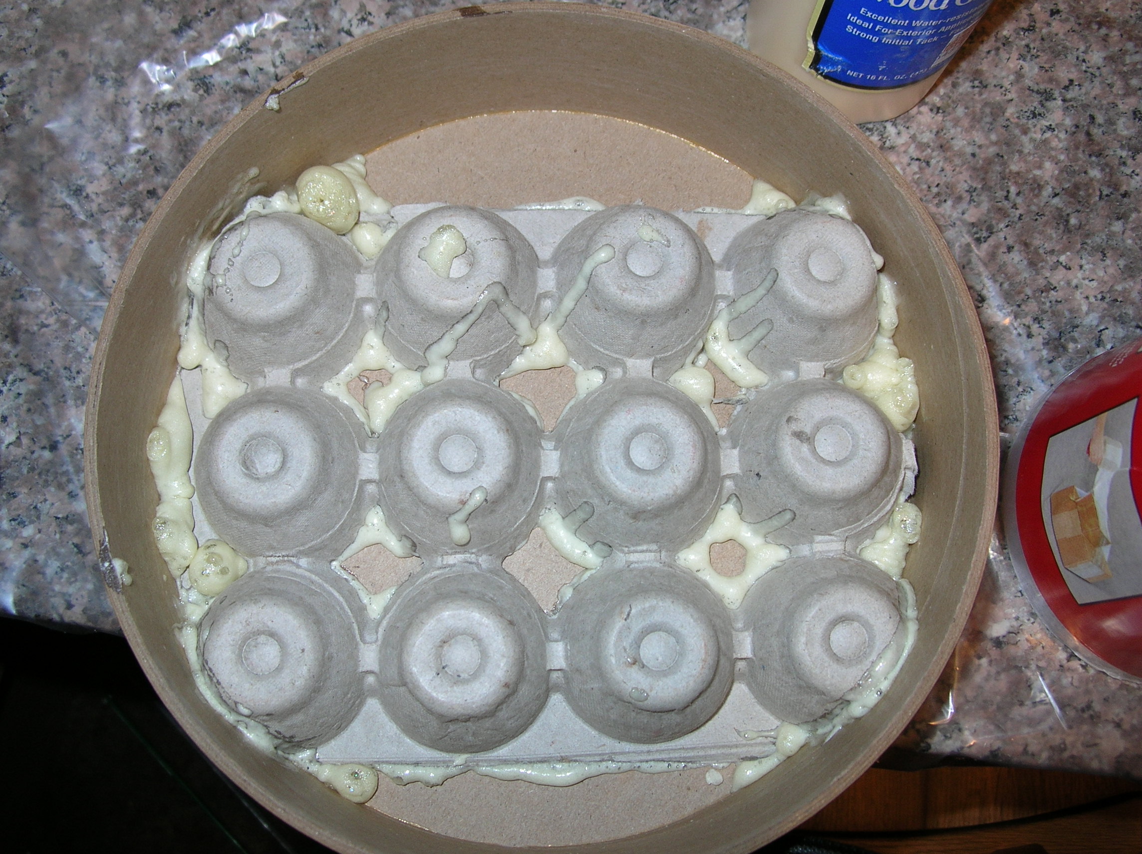 Due to neighbor complaints from last year I'm reducing the capacity of the largest targets. I'm doing that by gluing in part of an egg carton. The results are not pretty, but it doesn't have to be.