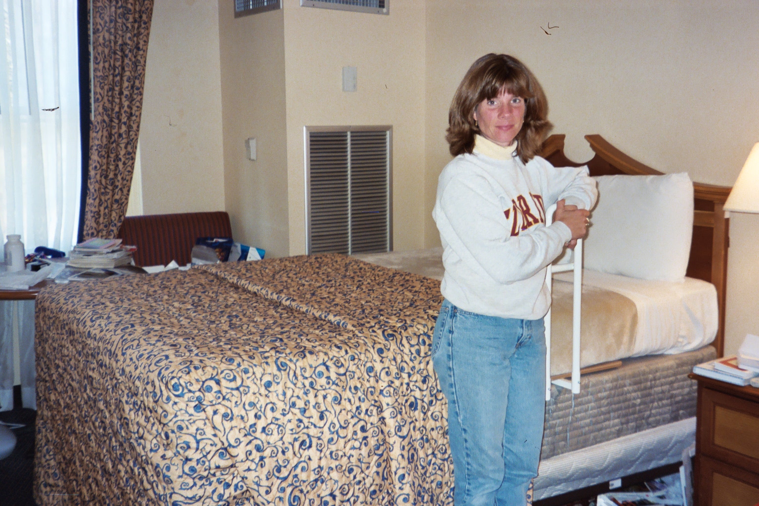 Lisa measures height of Jason's bed-notice extra box springs.